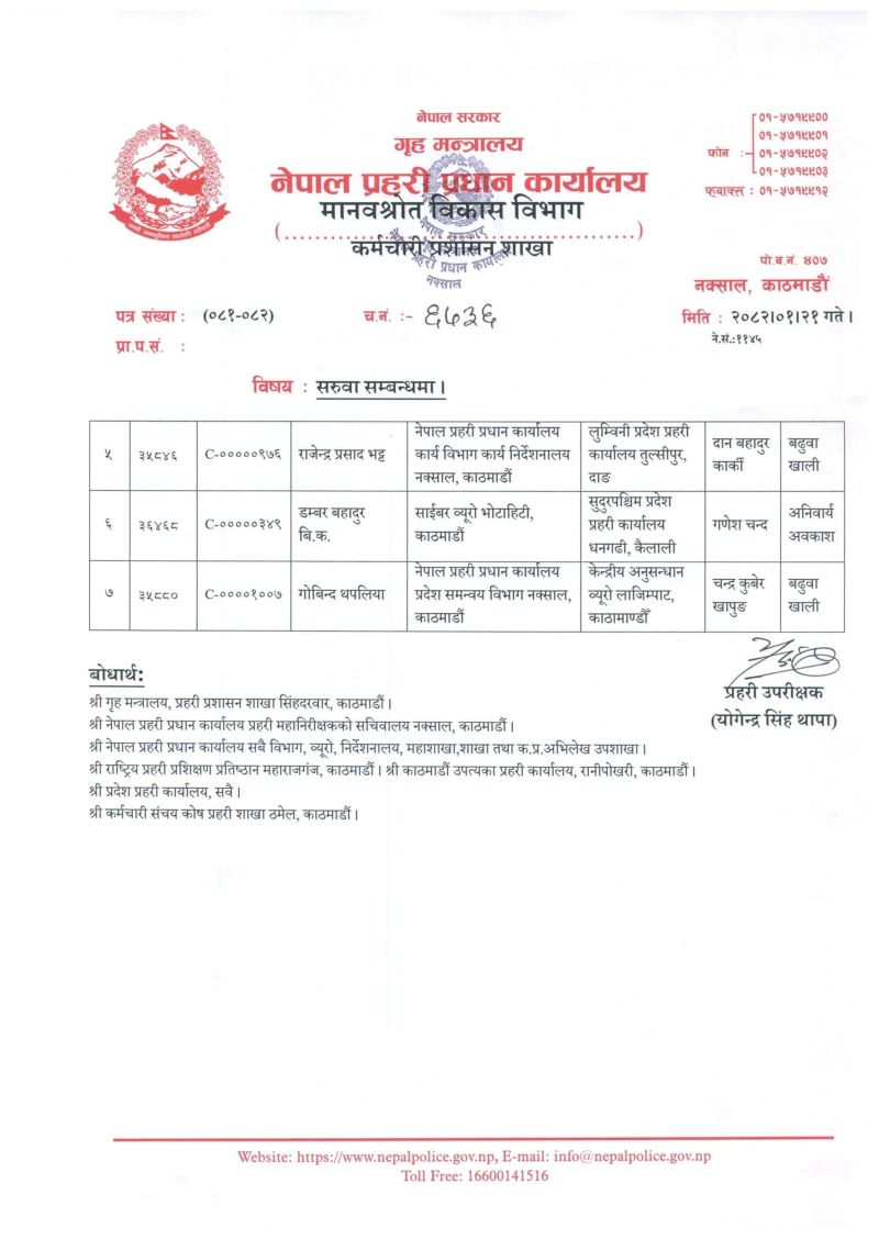 केन्द्रिय अनुसन्धान ब्यूरो लाजिम्पाटको जिम्मेवारी गोबिन्द थपलियाले पाएका छन्।