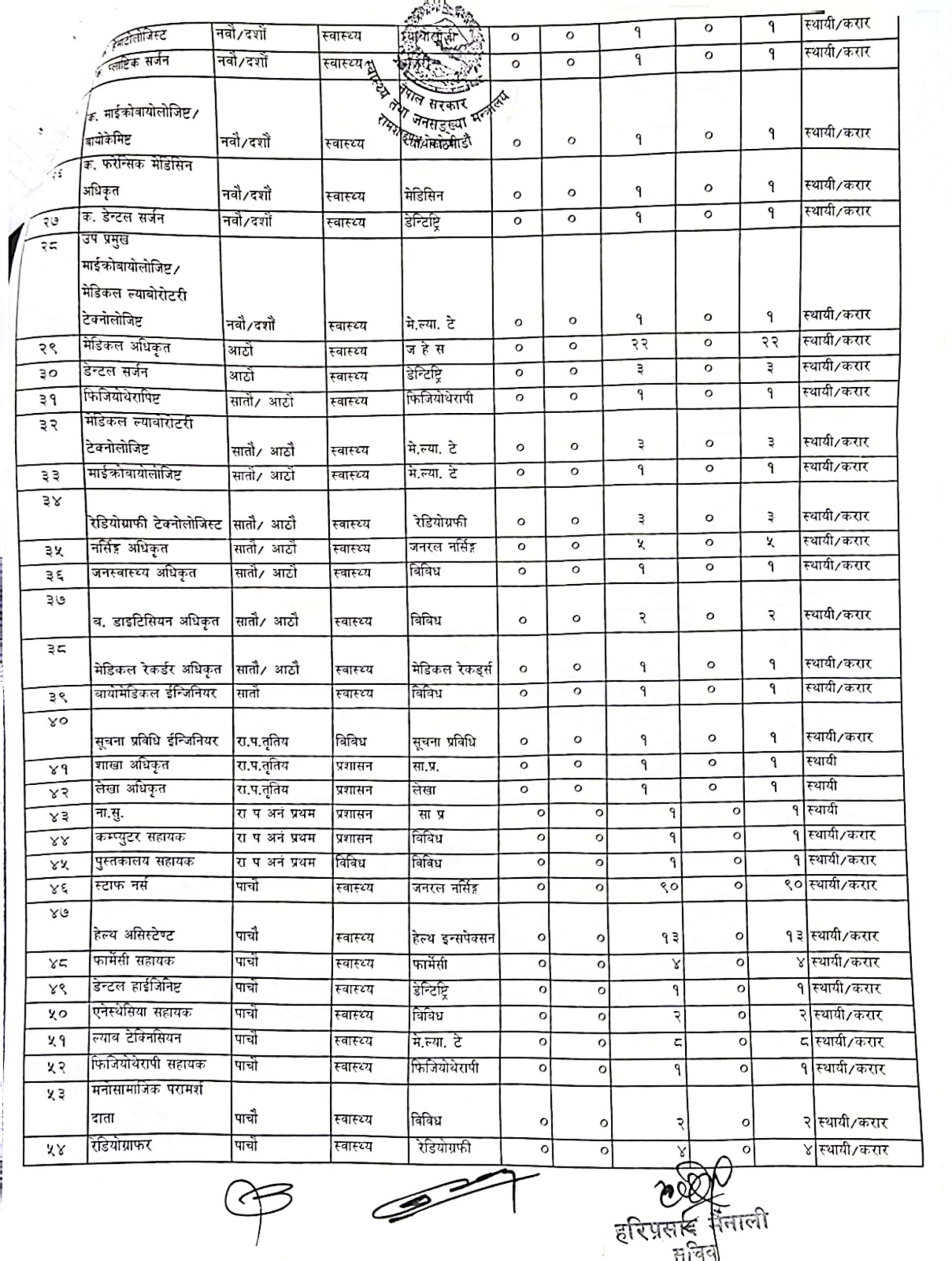 अस्थायी दरबन्दी थप हुनेमा डडेल्धुरा अस्पताल, सुशिल कोइराला प्रखर क्यान्सर अस्पताल, स्वास्थ्य बीमा बोर्ड र गेटा अस्पताल रहेका छन्।