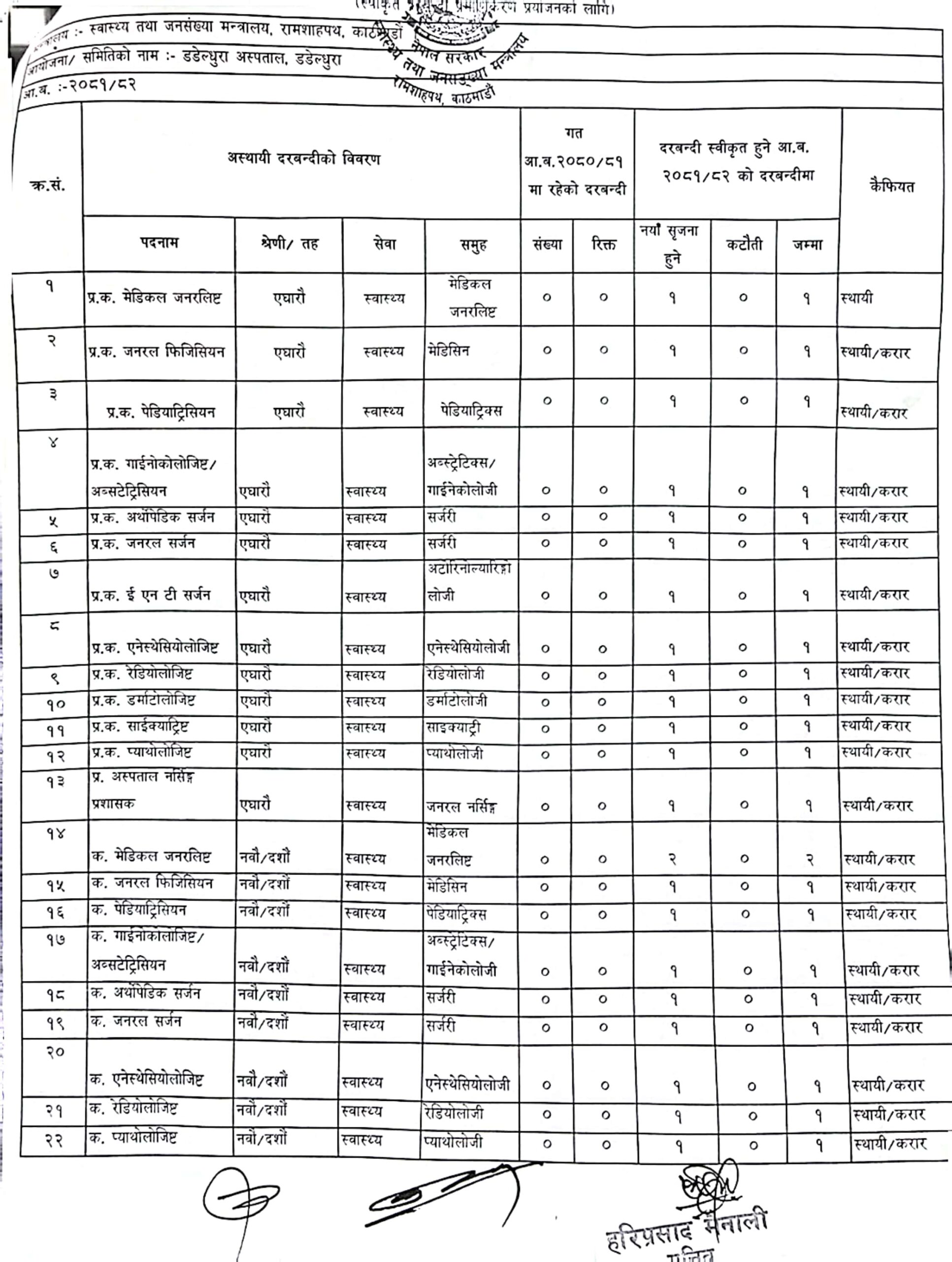 स्वास्थ्य मन्त्रालयको परिपत्र अनुसार संघीय मामिला तथा सामान्य प्रशासन मन्त्रालयले डडेल्धुरा अस्पतालमा ३१३ जनाको अस्थायी दरबन्दी थप गरेको हो।