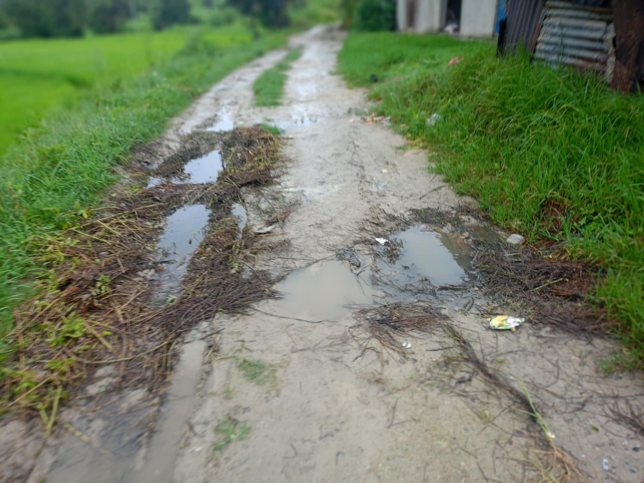 वडाले डोजर प्रयोग गरेर माटोले खाल्डाखुल्डी पुर्दा झनै हिलाम्मे बनेको छ।
