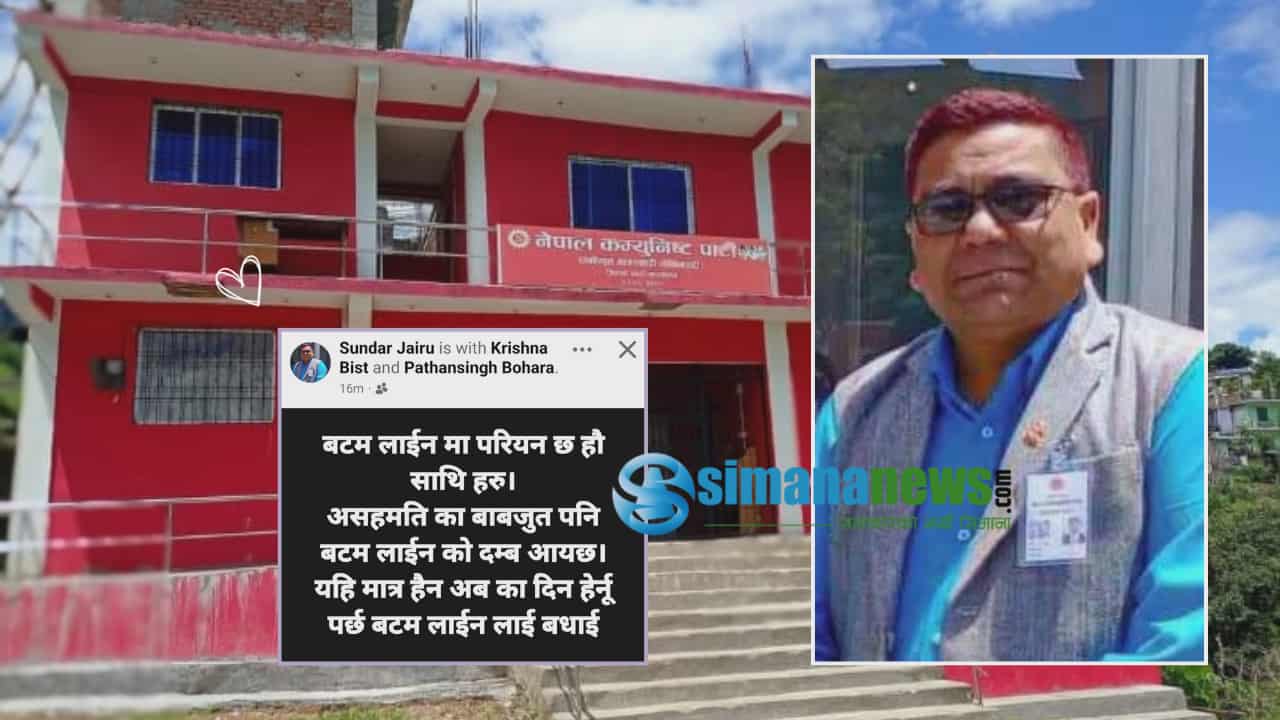 फेसबुकमार्फत प्रतिक्रिया दिँदै उनले ‘बटम लाइनको दम्भ’ भन्दै नेतृत्वमाथि कटाक्ष गरेका छन्।